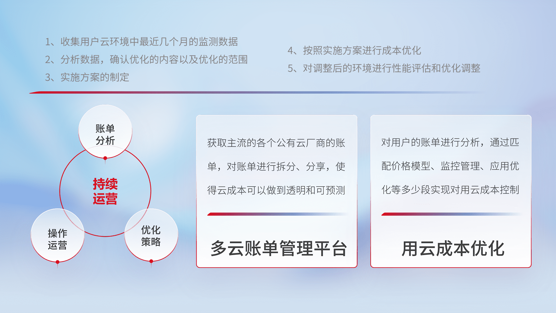 监控业务系统资源开销,,,,对资源的消耗精确计量,,实现费用的透明化管理,,,不断提升资源使用率,,,调整资源购买方式,,,降低资源费用成本,,,,用云成本可预测、、用云费用可优化,,云资源配额有据可依。。。