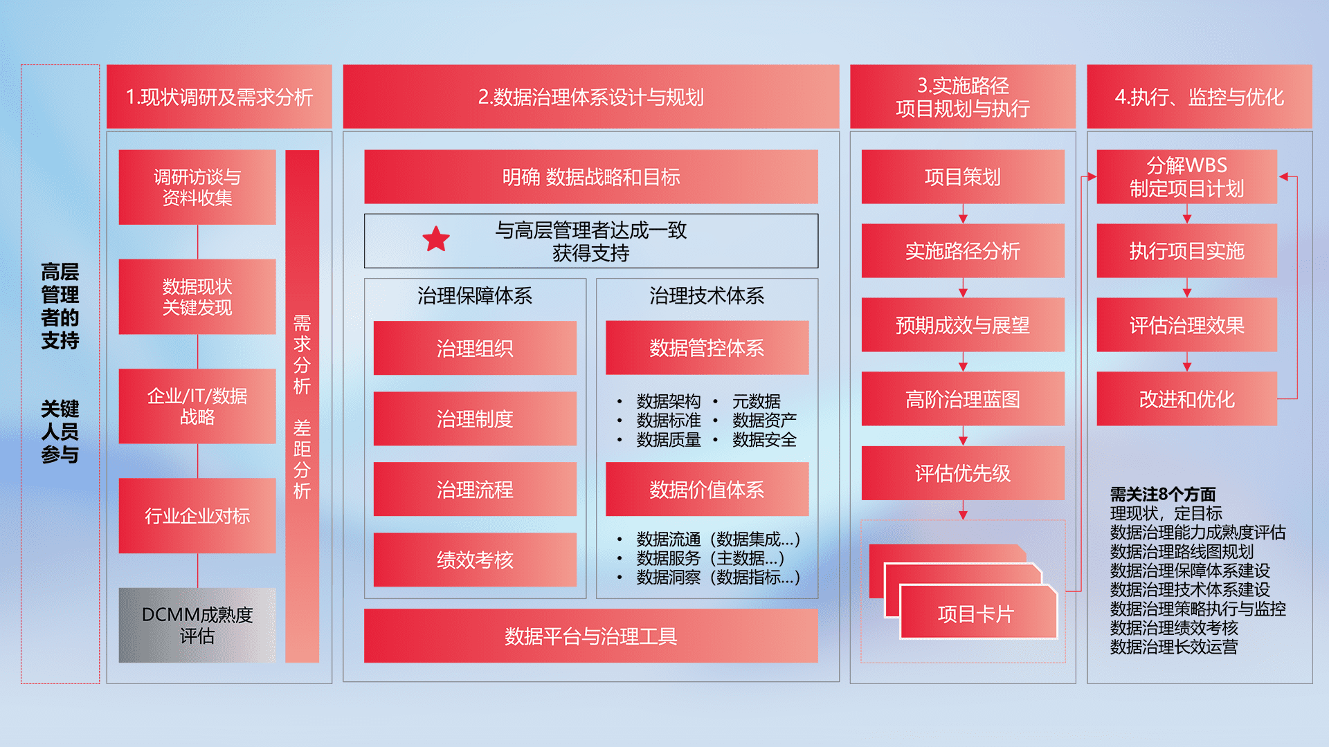 制定并执行统一的数据标准,,规范数据定义和格式,,消除冗余和不一致性,,,,实现跨部门和跨系统的数据一致性,,为企业提供标准化的数据基础。。